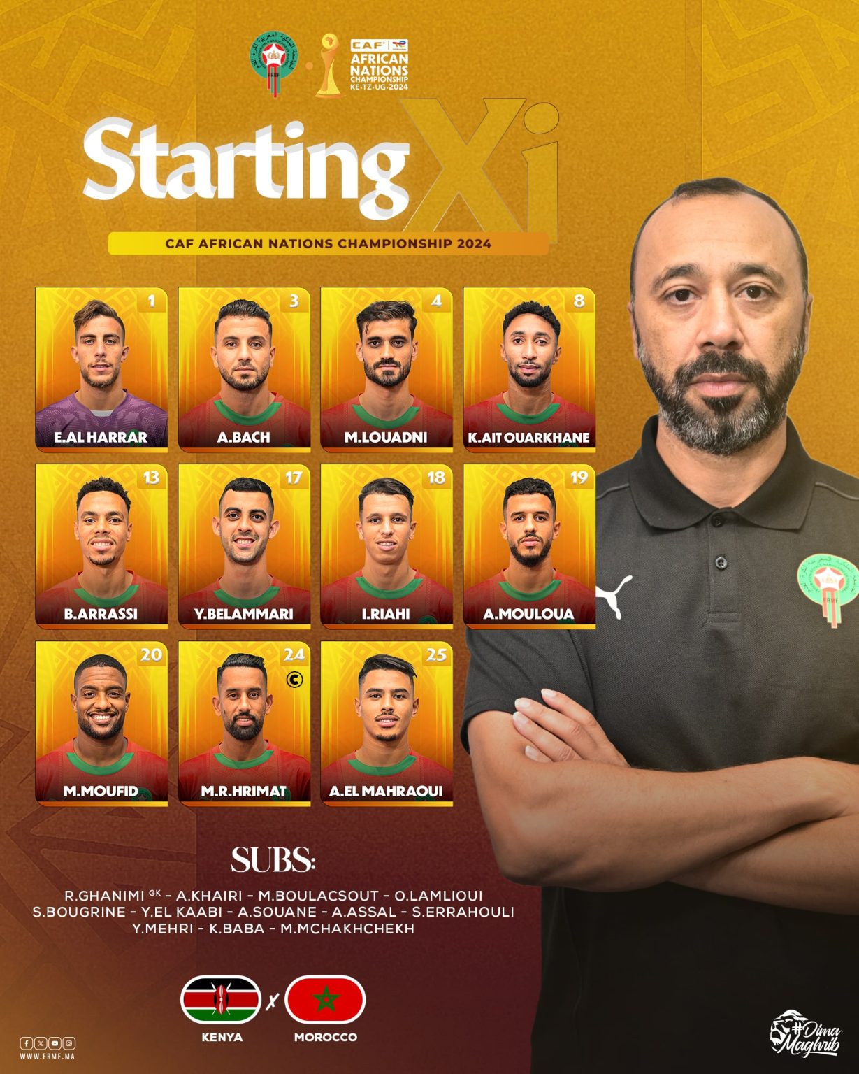 أعلن الناخب الوطني طارق السكتيوي، مدرب المنتخب المغربي للاعبين المحليين، عن التشكيلة الرسمية التي ستخوض ثاني مباريات "أسود الأطلس" في دور المجموعات، أمام منتخب كينيا، برسم منافسات بطولة إفريقيا للاعبين المحليين CHAN 2024.