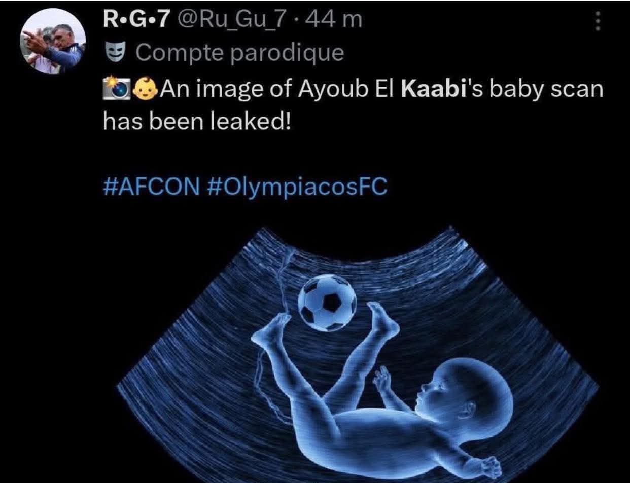 تحول النجم الدولي المغربي، أيوب الكعبي، مهاجم نادي أولمبياكوس اليوناني، إلى مادة دسمة للإشادة والفكاهة على منصات التواصل الاجتماعي، بعد انتشار "ميم" (Meme) تخيلي يصور اللاعب وهو يمارس هوايته في تسجيل الأهداف بـ "المقصيات" حتى قبل ولادته.
