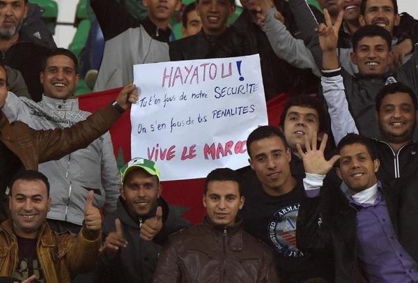 وردد الجمهور المغربي شعارات تندد بقرار الكاف ورئيسها الكاميروني عيسى حياتو، بعد سحبه تنظيم الكان من من المغرب و منحها لدولة غينيا الإستوائية.