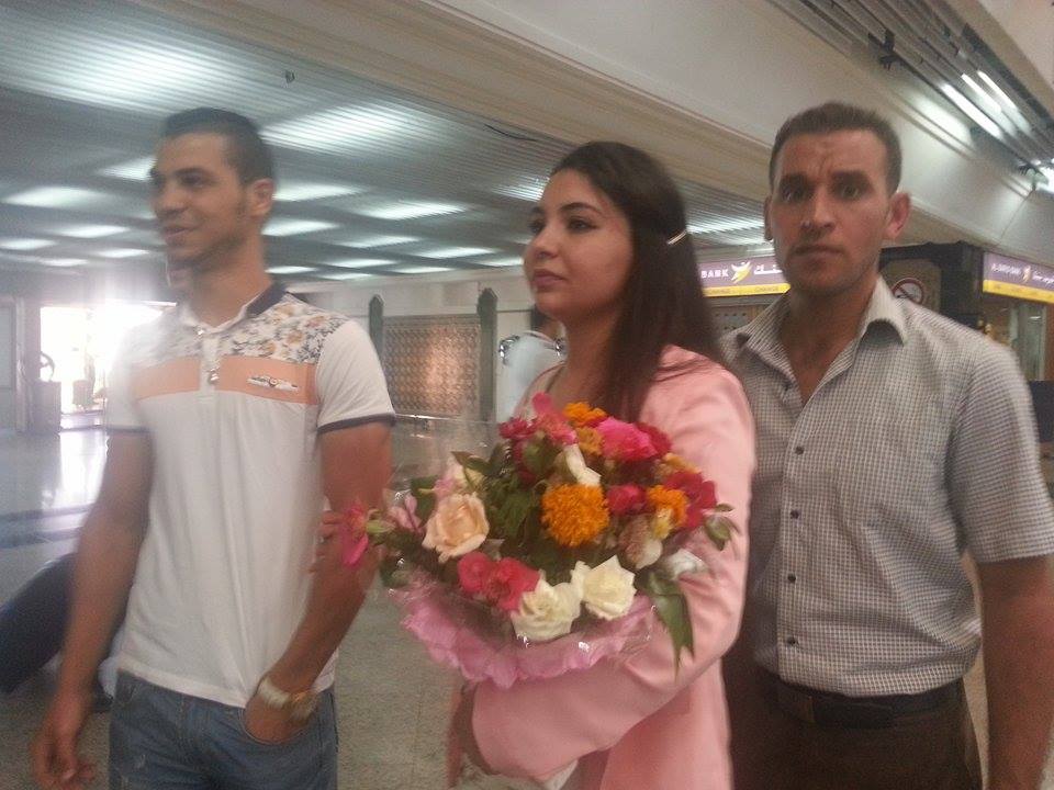 و في الصورة يظهر شقيق محمد الربيعي الاصغر حمزة، و زوجته التي تحمل باقة ورود لاستقبالها زوجها البطل العالمي ابن منطقة البرنوصي .