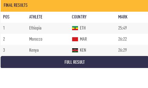 ومثل المنتخب المغربي في هذا السباق، نخبة من العدائين البارزين، كسفيان البقالي وعبد العاطي إكدير، بالاضافة إلى كوثر فركوسي ورباب عرافي، حيث نجحت الأخيرة في تجاوز العداءة الكينية خلال الأمتار الأخيرة، مهدية المغرب وصافة بطولة العالم في السباق المختلط الذي عاد لقبه لاثيوبيا.