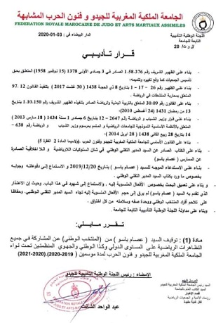 هذا واعتبرت مصادرنا أنه كان حريا على المدير التقني أن يتعامل مع اللاعب بكثير من الحلم، سيما أن الأمر يتعلق بشاب في سن حساس، بدل اتخاذ هذا العقاب الذي سيحرم المغرب من بطل متميز، ويحرمه من فرصة تحقيق حلمه الأولمبي(الوثيقة):