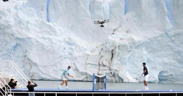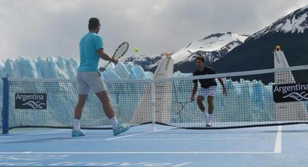 خاض الإسباني رافائيل نادال المصنف الأول عالميا بين لاعبي التنس المحترفين ووصيفه الصربي نوفاك ديوكوفيتش مباراة تنس وسط الجليد جنوبي الأرجنتين.