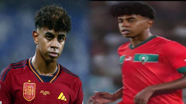نشر نجم برشلونة المنحدر من أصول مغربية، لامين جمال، صورة جديدة على خاصية ستوري بحسابه على "إنستغرام"، رفقة جدته من الأب، وهو يرتدي سترة وسروالا يحملان عبارة "مكتوب" باللغة العربية.