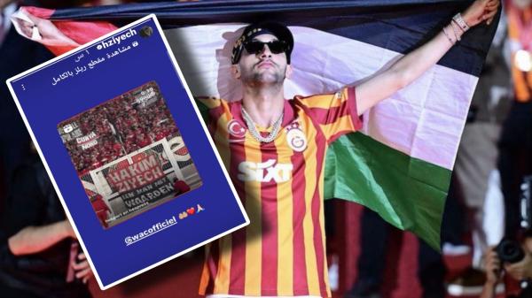 تفاعل نجم نادي غالطة سراي التركي، الدولي المغربي حكيم زياش، مع التضامن الكبير الذي حظي به من جماهير فريق الوداد الرياضي، التي رفعت لافتة مؤيدة له ولمواقفه التضامنية مع الشعب الفلسطيني.