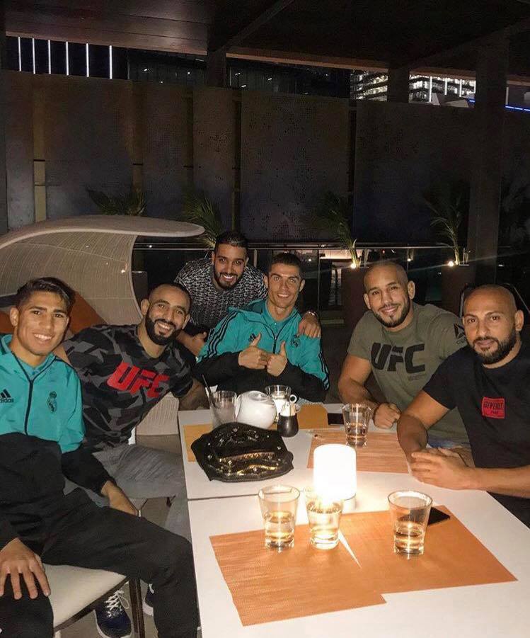 قام بطل العالم في رياضة القتال الحرّ، المغربي أبو بكر زعيتر، اليوم الثلاثاء، رفقة أشقائه بزيارة مواطنهم أشرف حكيمي و صديقهم كريستيانو رونالدو بالإضافة لصديق رونالدو المغربي و رجل الأعمال أنَس اوزيفي في أبو ظبي.