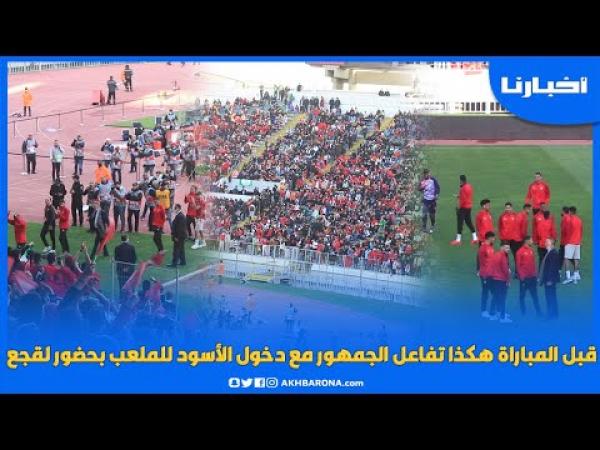 قبل المباراة، هكذا تفاعل الجمهور مع دخول الأسود للملعب بحضور لقجع