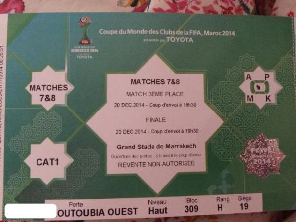 أعلنت اللجنة المنظمة المحلية لكأس العالم للأندية المغرب 2014، أن جميع تذاكر المباراة النهائية التي ستجرى اليوم بين ريال مدريد و سان لورنزو الأرجنتيني، قد بيعت بأكملها و بالتالي فالمباراة ستلعب بشبابيك مغلقة.