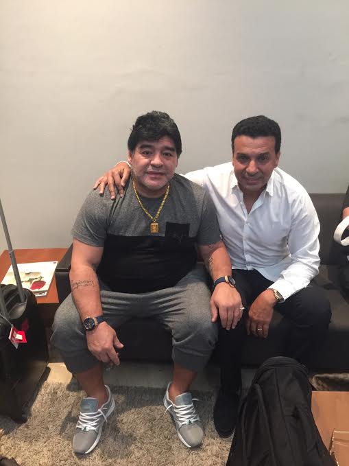 و حضي مارادونا باستقبال حافل في مطار مراكش المنارة و كان في استقباله ، وكيل اللاعبين المغربي كريم بلق، الذي تكلف بمهام جلب نجوم الكرة العالمية للمشاركة في هذه المباراة، و من المنتظر أن ينتقل مارادونا رفقة باقي النجوم مساء غد الخميس إلى العيون.