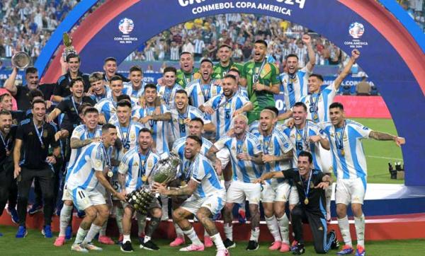 أحرزت الأرجنتين حاملة اللقب كأس كوبا أمريكا لكرة القدم للمرة 16 في رقم قياسي بفوزها على كولومبيا 1-صفر بفضل هدف متأخر في الوقت الإضافي للبديل لاوتارو مارتينيز على استاد هارد روك في فلوريدا الاثنين.