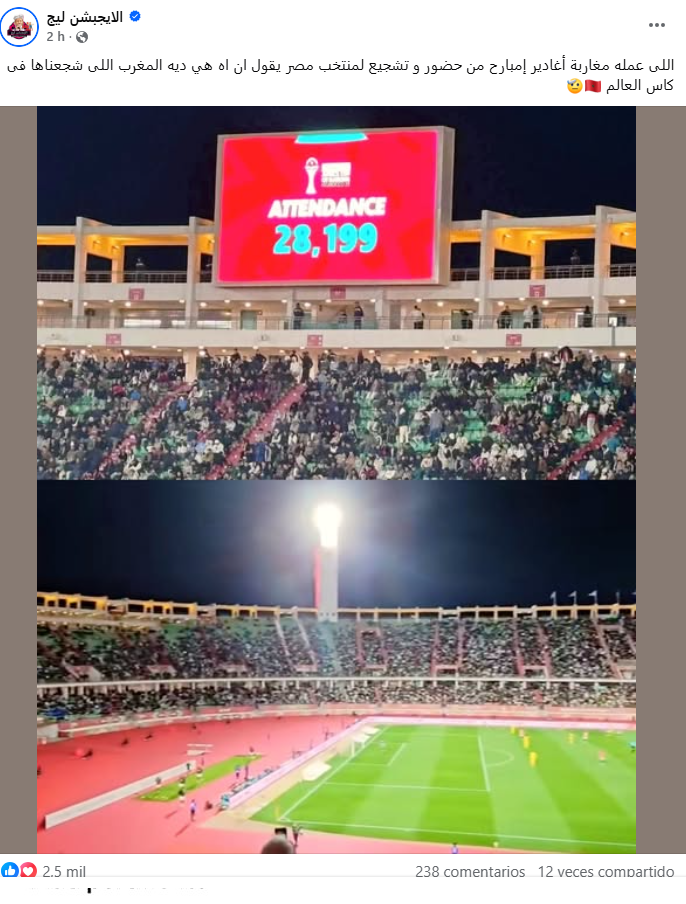 ورصدت الصفحات المصرية تفاعل الجماهير المغربية الكبيرة في المدرجات، حيث حمل العديد منهم علم مصر إلى جانب العلم المغربي، مؤكدين دعمهم للفراعنة في أولى مبارياتهم بالبطولة، ما شكل مشهداً يعبّر عن التضامن والمحبة بين الشعبين.