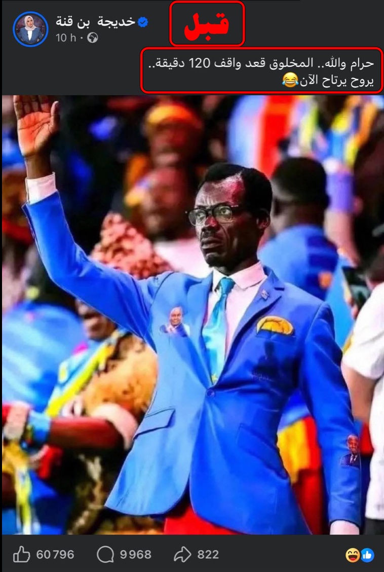 تدوينة "بن قنة" لم تكن مجرد تعليق على مباراة في كرة القدم، بل تجاوزت ذلك لتصبح تعبيرًا صادمًا عن عنصرية صريحة، حيث قامت بنشر صورة لمشجع كونغولي شهير، وارفقتها بتعليق ساخر جاء فيه: "حرام والله.. (المخلوق) قعد واقف 120 دقيقة .. يروح يرتاح الآن" مع إيموجي ساخر، في محاولة واضحة لتقزيم إنسانيته والسخرية من جهوده في التشجيع. هذا المنشور أثار غضب الآلاف من المتابعين الذين، وصفوه بالعنصري والمهين، مؤكدين أن الإعلامية تجاوزت كل الحدود المهنية، ليصبح تصرفها عنوانًا للانحدار الأخلاقي في وسائل الإعلام، خاصة عندما يتعلق الأمر بتقزيم الآخر وفقدان الحس الإنساني في سباق التفاعل والمشاهدات.