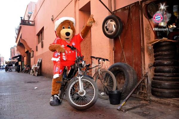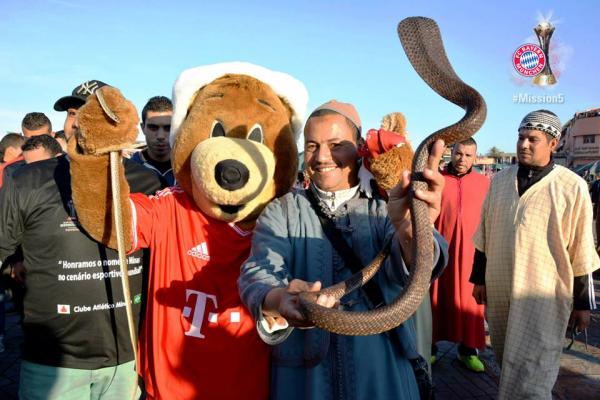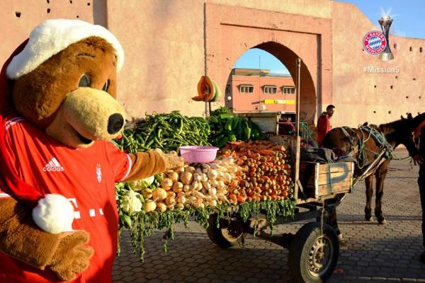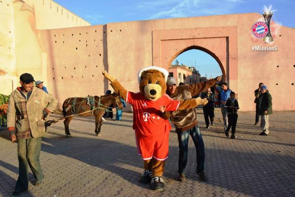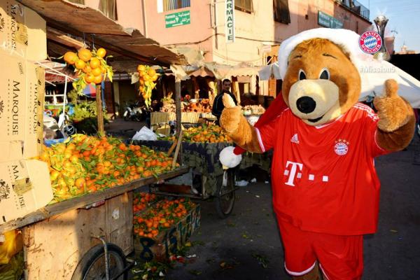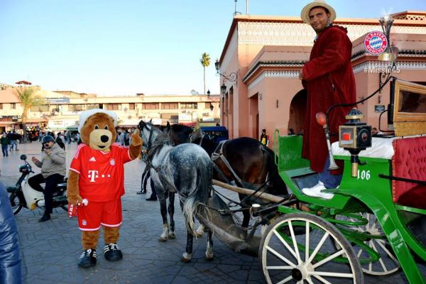نشرت الصفحة الرسمية لفريق بايرن ميونيخ الألماني على الفايسبوك صورا للدب بيرني، و هو يتجول في ساحة جامع الفنا و كذا المدينة العتيقة وحدائق الماجوريل بمراكش.