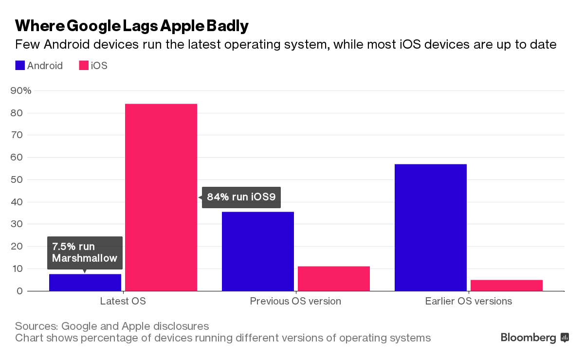 وتعتبر إحدى أصعب التحديات التي تواجه شركة غوغل هي قيام مصنعي الهواتف بطرح أحدث الإصدرات من نظام أندرويد، وذلك في ظل محاولة الشركة توسيع استخدام البرمجيات المحمولة وزيادة المبيعات عبر التطبيقات والخدمات.