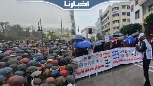 الأساتذة يجوبون شوارع طنحة في مسيرة حاشدة رغم الأمطار