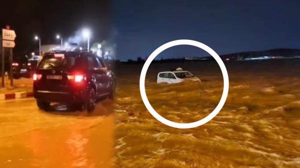 مشاهد مرعبة.. السيول الجارفة تغرق سيارات بالقرب من مطار وجدة أنجاد