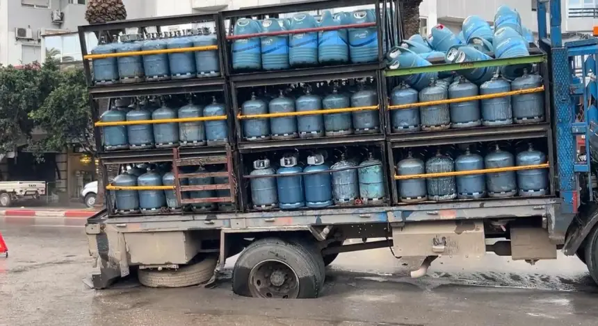 ضعف البنية التحتية بالدار البيضاء يتسبب في سقوط شاحنة لنقل "البوطا" في حفرة