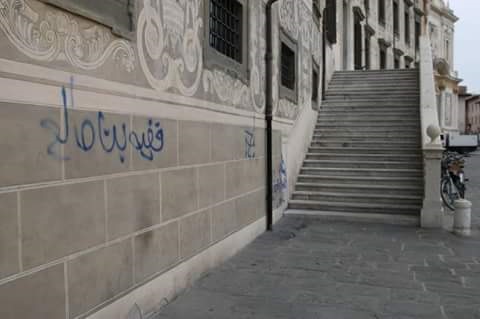 ذكرت صفحات فيسبوكية ومنابر إعلامية للجالية المغربية المقيمة بالخارج ، أن كتابات حائطية عربية استنفرت الأمن الإيطالي بمدينة بيزا ، حيث أعلنت السلطات الإيطالية رفع حالة التأهب اعتقادا منها أن الكتابات تمجد الإرهاب .