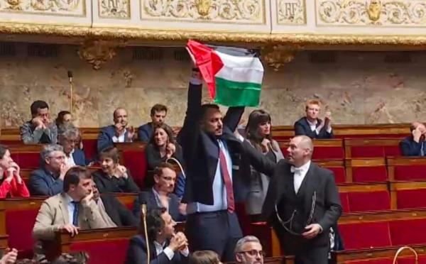 وفي فرنسا، أدى رفع النائب سيباستيان ديلوجو علماً فلسطينياً إلى تعليق جلسة الجمعية الوطنية، واستبعاده منها لمدة 15 يوماً.