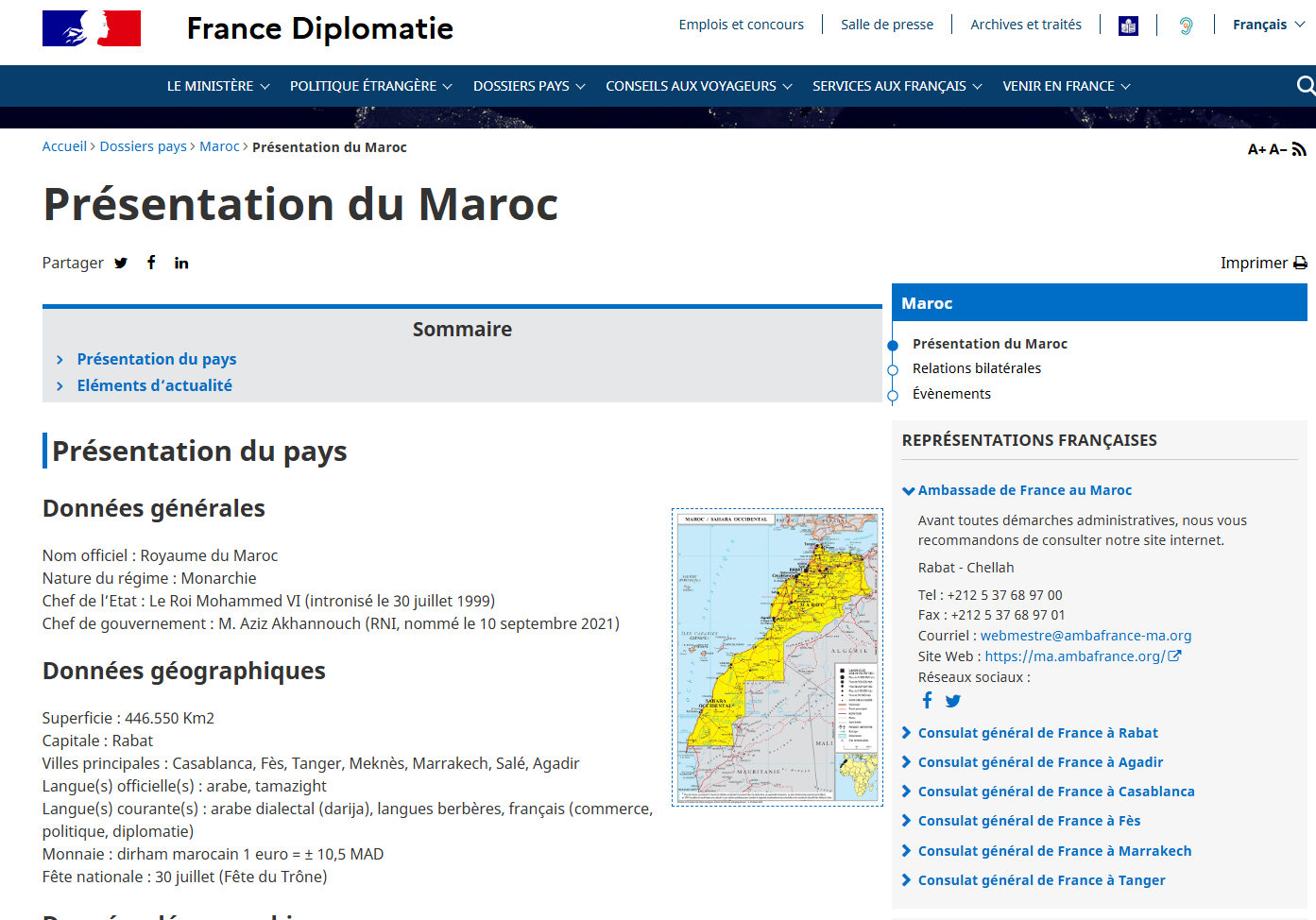 في خطوة تؤكد الموقف الفرنسي الداعم لمغربية الصحراء، قامت وزارة الخارجية الفرنسية بتعديل خريطة المغرب على موقعها الرسمي لتشمل كافة الأراضي المغربية من طنجة إلى الگويرة.
