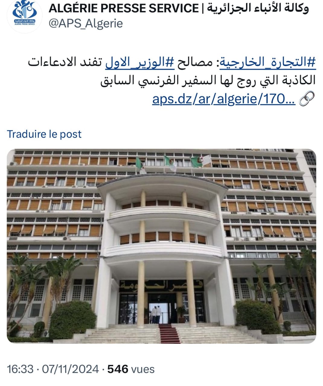 وسارعت الجزائر عبر مصالح الوزير الأول إلى تفنيد ما جاء على لسان سفير فرنسا السابق، واصفة إياها بالادعاءات الكاذبة، ما اعتبره مختصون مؤشرا على خوف النظام الجزائري من ردة الفعل الفرنسية التي رُجِّح أنها كانت كبيرة من قدرة تحمل سكان قصر المرادية.